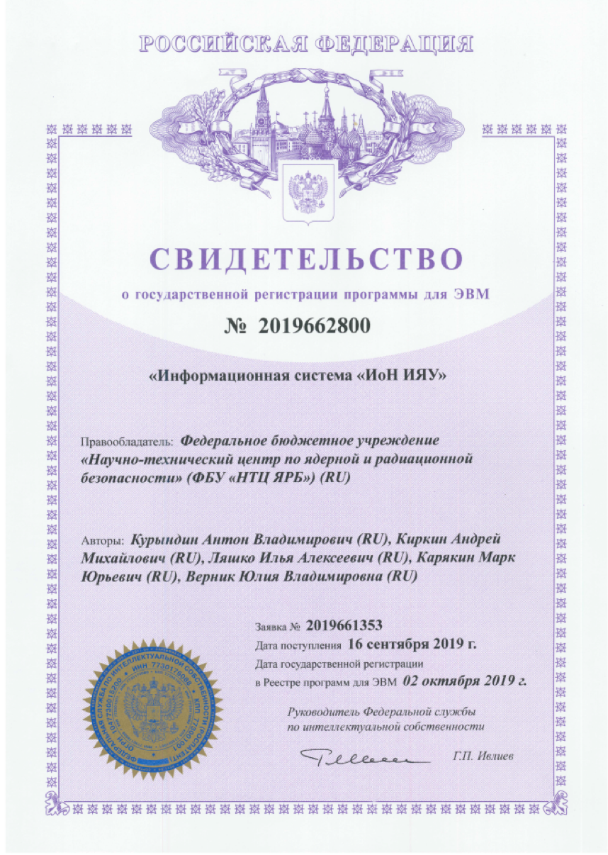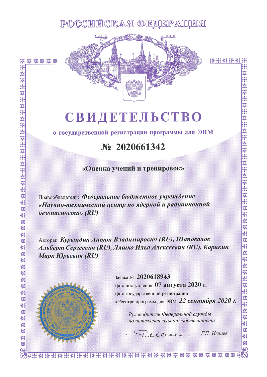 Программа прошла процедуру государственной регистрации (свидетельство о государственной регистрации программы для ЭВМ № 2019611041).