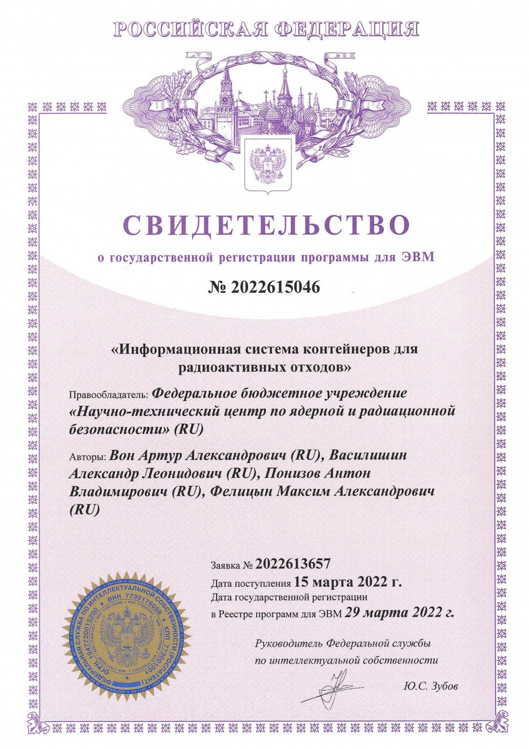 Программное средство предназначено для отображения, хранения и структурирования информации о сертификатах-разрешениях на конструкцию и перевозку упаковок с радиоактивными материалами, а также другими сертификатами-разрешениями, выдача которых осуществляется при транспортировании радиоактивных материалов.