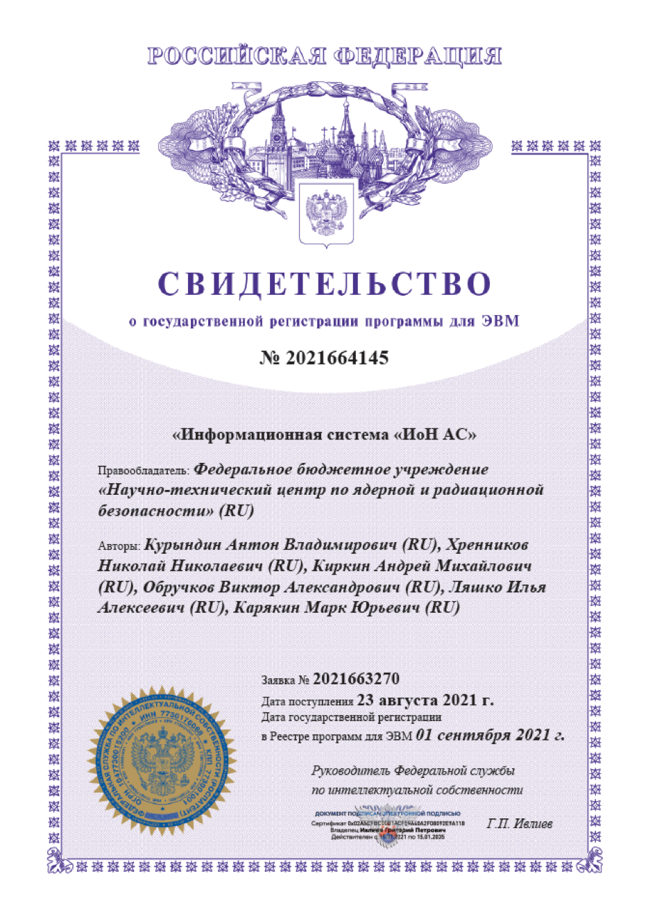 Свидетельство о государственной регистрации программы для ЭВМ № 2021617328). Авторы: Курындин Антон Владимирович, Киркин Андрей Михайлович, Строганов Анатолий Александрович, Ляшко Илья Алексеевич, Карякин Марк Юрьевич, Лось Виктория Александровна.