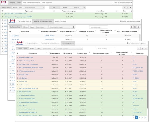 Информационная система по организации экспертизы проектов нормативов выбросов и сбросов и по разрешениям на выбросы и сбросы радиоактивных веществ предназначена для отображения, хранения и структурирования информации о разрешениях на выбросы и сбросы объектов, осуществляющих радиоактивные выбросы или сбросы, а также для ведения учета текущих и прошедших экспертиз проектов нормативов выбросов радионуклидов в атмосферный воздух и экспертиз проектов нормативов сбросов радионуклидов в водные объекты.
