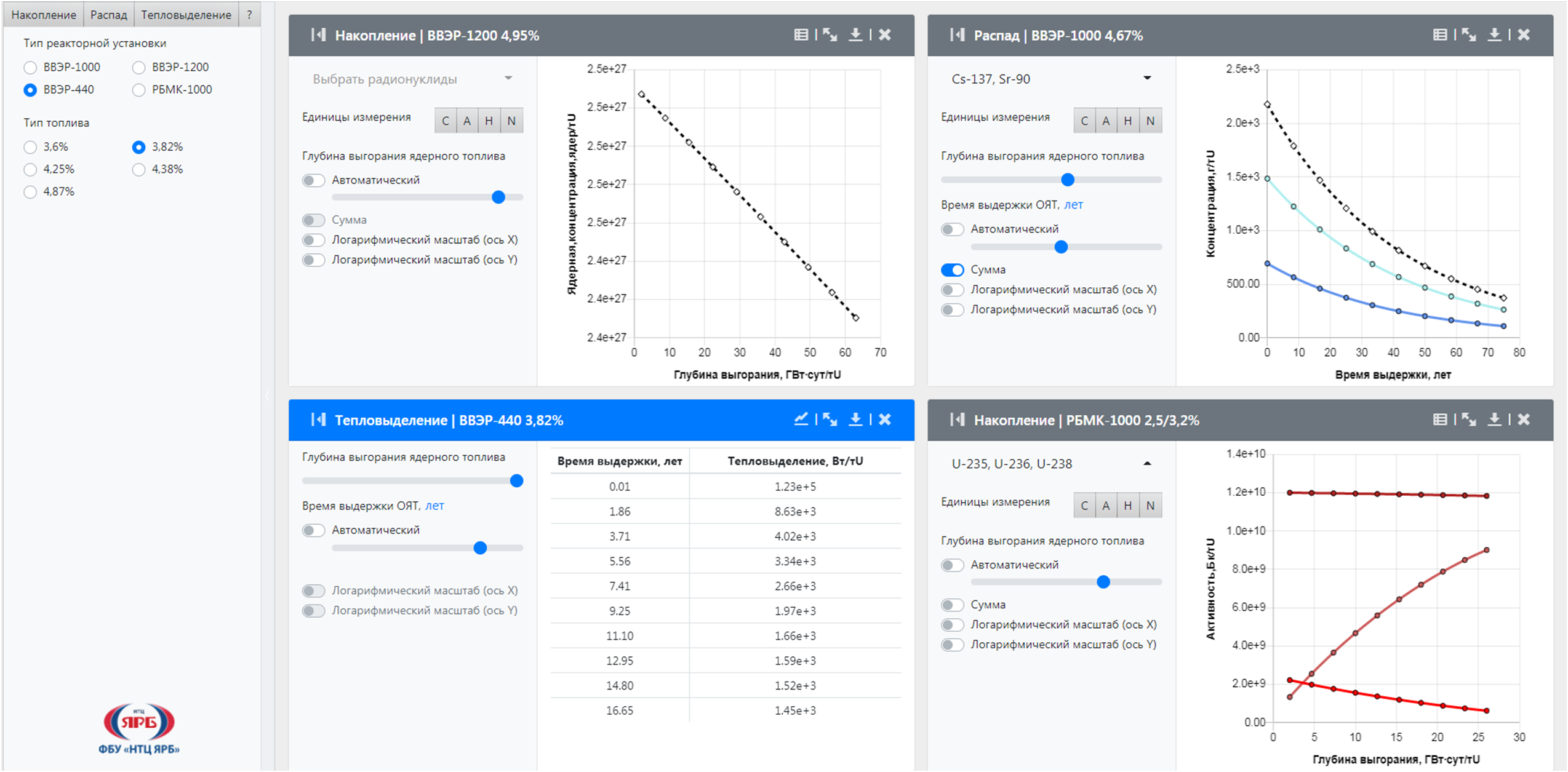 ПС предназначено для экспресс-оценки концентрации, активности и тепловыделения основных радионуклидов, содержащихся в отработавшем ядерном топливе (ОЯТ) реакторов типа ВВЭР-1000, ВВЭР-1200, ВВЭР-440 и РБМК-1000, в зависимости от глубины выгорания ядерного топлива и начального обогащения, а также остаточного тепловыделения ОЯТ упомянутых реакторных установок в зависимости от глубины выгорания ядерного топлива, времени выдержки и начального обогащения.